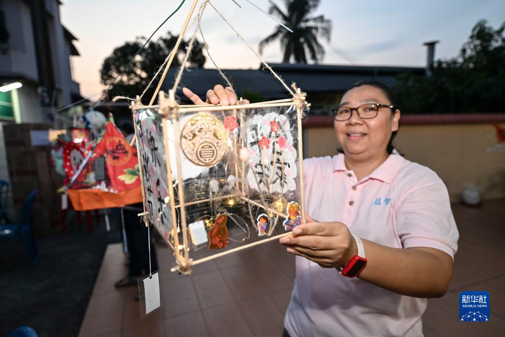 9月27日,一名女子在馬來(lái)西亞馬六甲州丹絨吉寧的中秋晚會(huì )上展示燈籠。