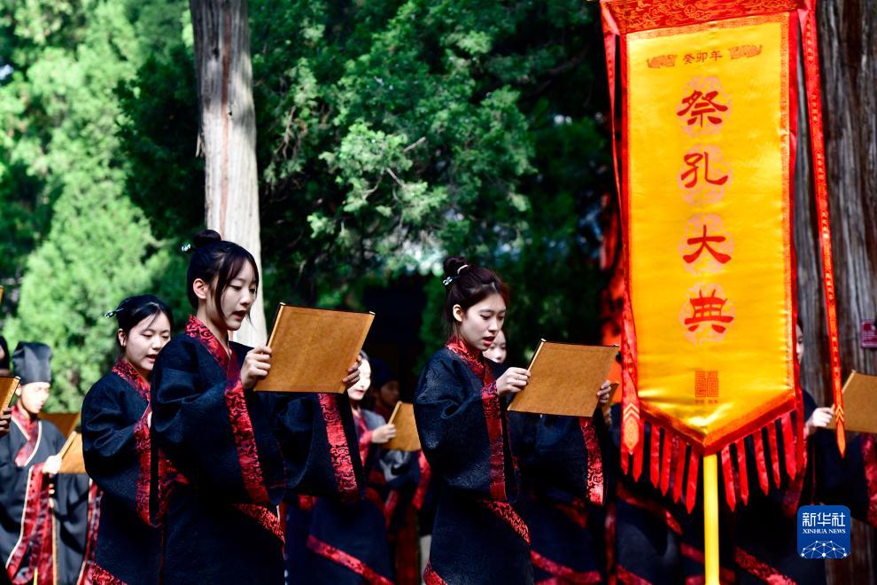 9月28日,在中國(曲阜)國際孔子文化節·癸卯年祭孔大典上,學(xué)生在誦讀《論語(yǔ)》。