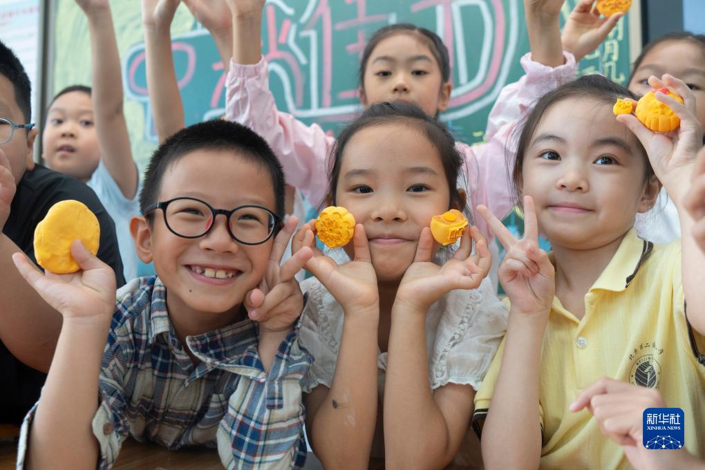 9月28日,在北京西城區的北京第二實(shí)驗小學(xué)涭水河分校,小學(xué)生展示“粘土月餅”。