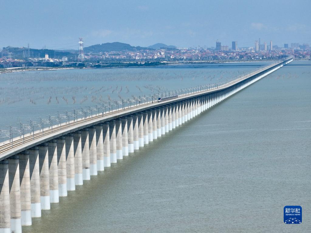 福廈高鐵湄洲灣跨海大橋(9月19日攝,無(wú)人機照片)。