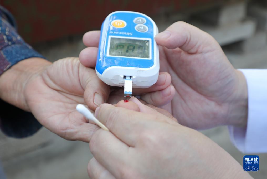 9月28日,保定市徐水區義聯(lián)莊鄉衛生院家庭醫生在崔莊村入戶(hù)為村民檢測血糖。