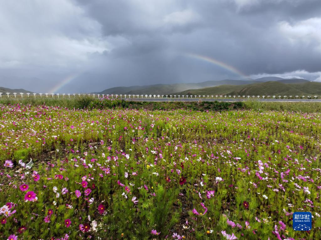 彩虹橫跨圓環(huán)陣太陽(yáng)射電成像望遠鏡(2023年8月27日攝)。