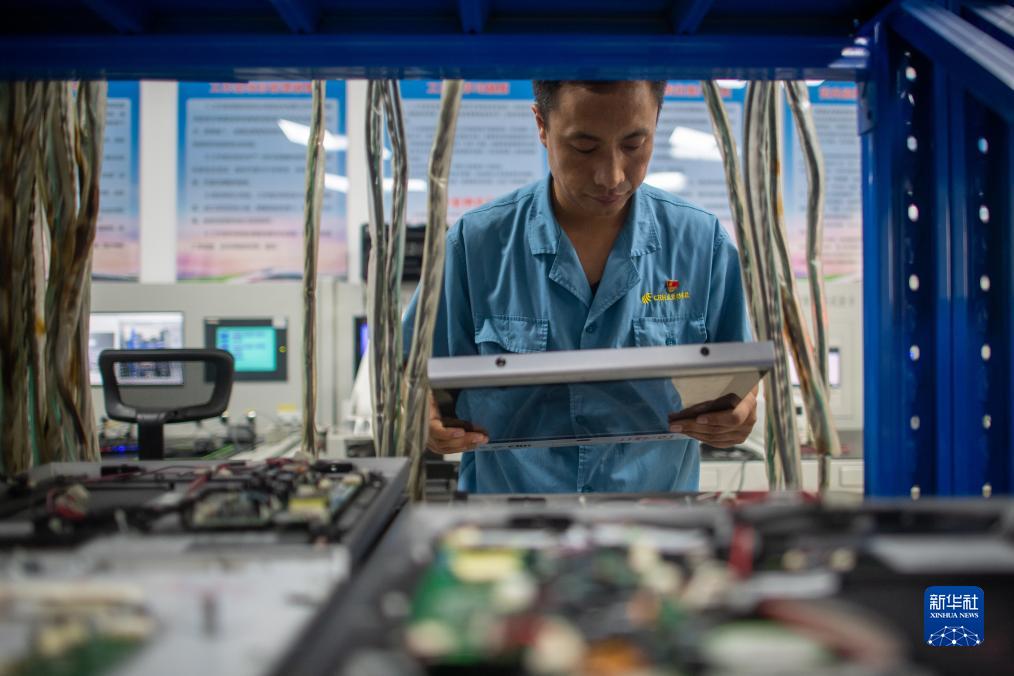 馬耀鋒在檢查動(dòng)車(chē)組故障配件的修復情況(9月27日攝)。