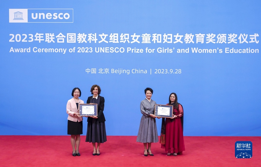 彭麗媛出席2023年聯(lián)合國教科文組織女童和婦女教育獎頒獎儀式
