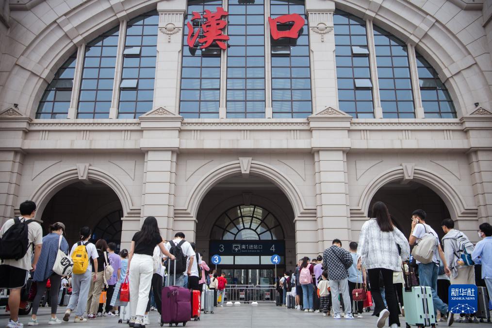 9月29日,旅客在漢口站排隊進(jìn)站。