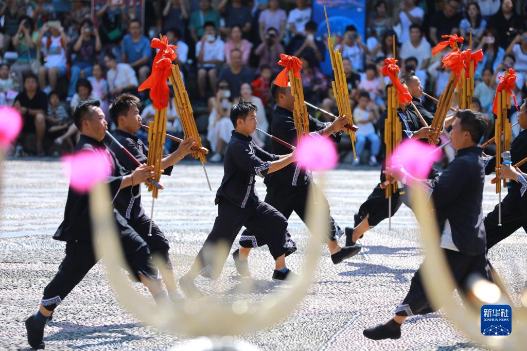 9月29日,游客在貴州省黔東南苗族侗族自治州雷山縣西江千戶(hù)苗寨景區觀(guān)看民族歌舞表演。