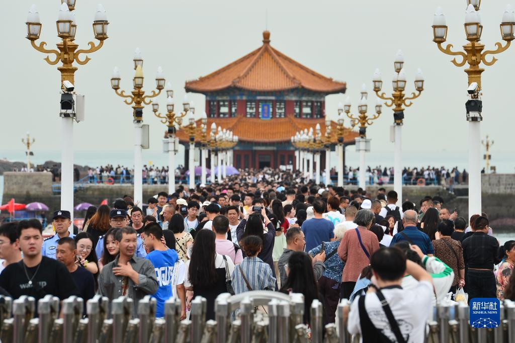 9月29日,游人在山東省青島市棧橋景區游玩。