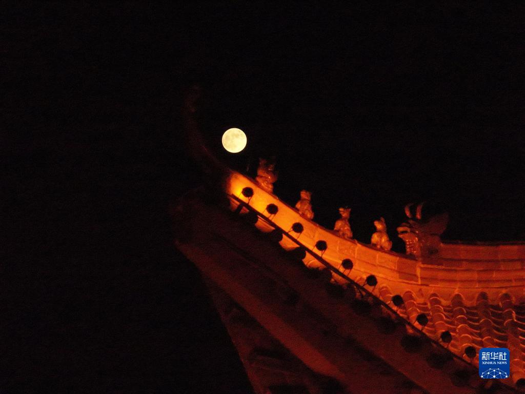 這是9月29日在貴州省黔南布依族苗族自治州福泉市古城景區拍攝的月亮(無(wú)人機照片)。
