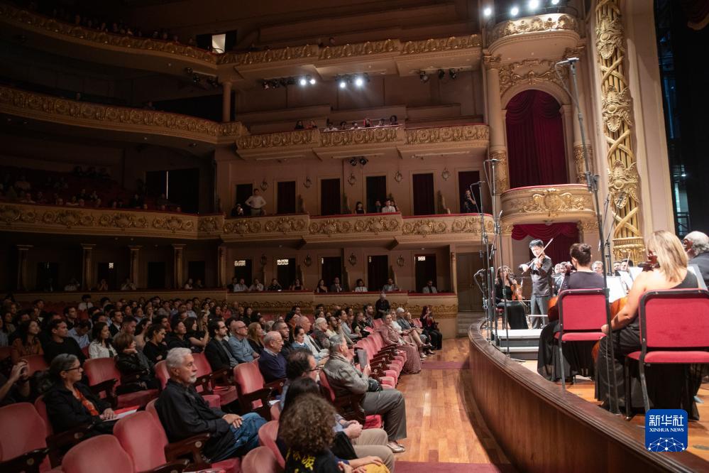 9月28日,在巴西里約熱內盧市立劇院,觀(guān)眾欣賞中國中央歌劇院交響樂(lè )團首席小提琴家杜玄的演出。