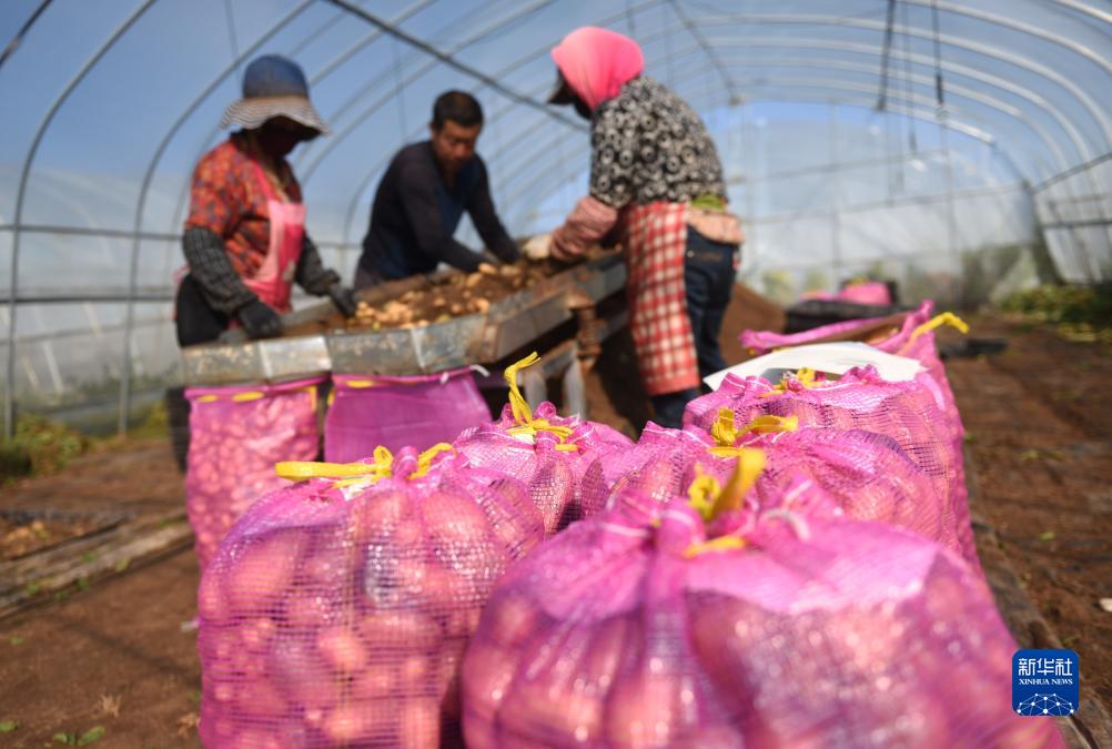 9月29日,當地農民將馬鈴薯原原種裝袋,準備外運。