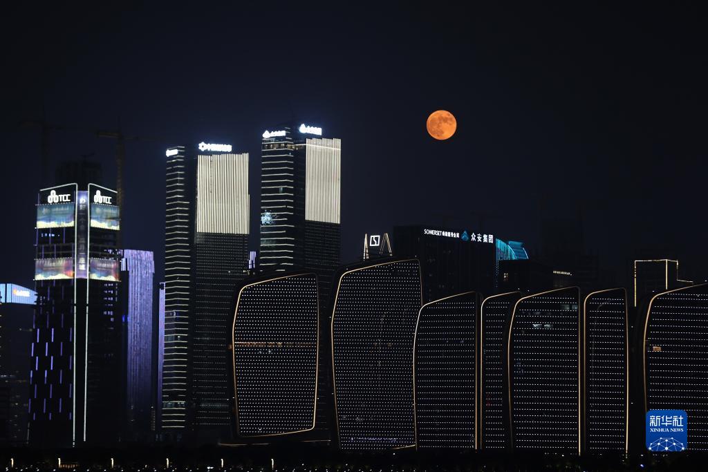 中秋佳節當晚,一輪滿(mǎn)月高懸在杭州上空,吸引眾多市民游客觀(guān)賞。
