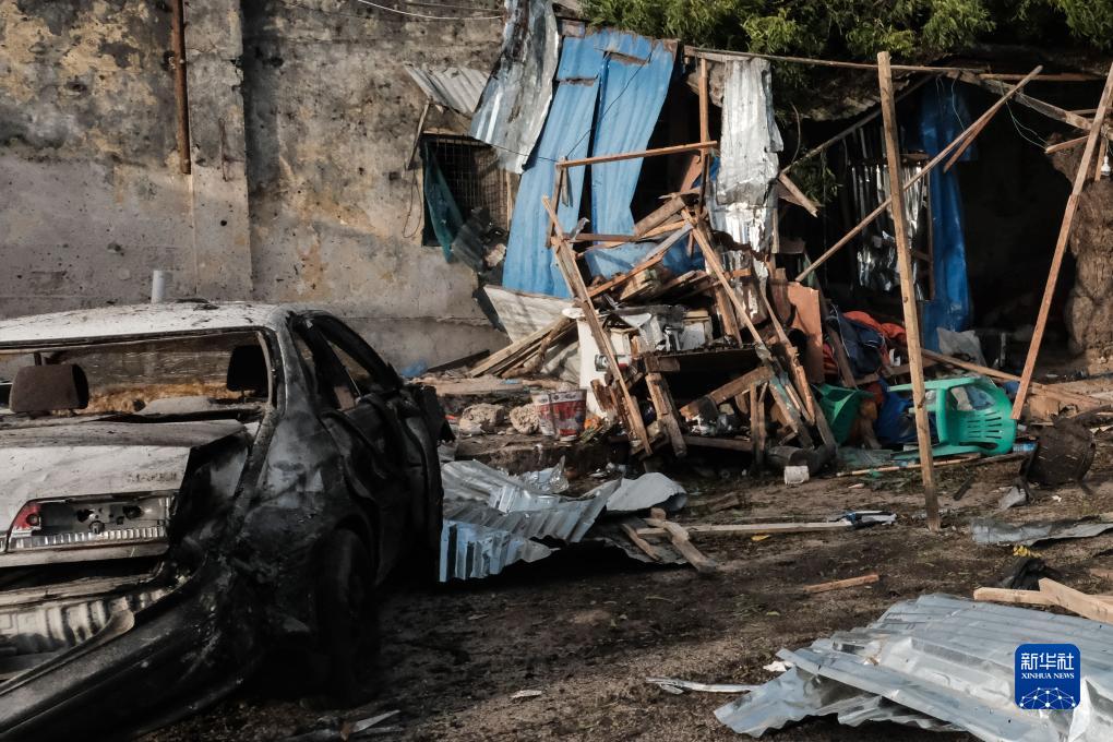 這是9月29日在索馬里首都摩加迪沙拍攝的自殺式炸彈襲擊現場(chǎng)。