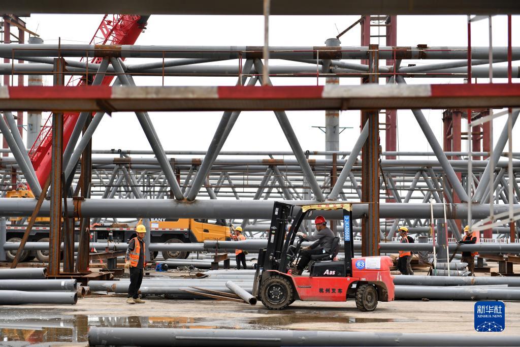 9月30日,中鐵建工工人在湖南長(cháng)沙西站項目建設工地作業(yè)。