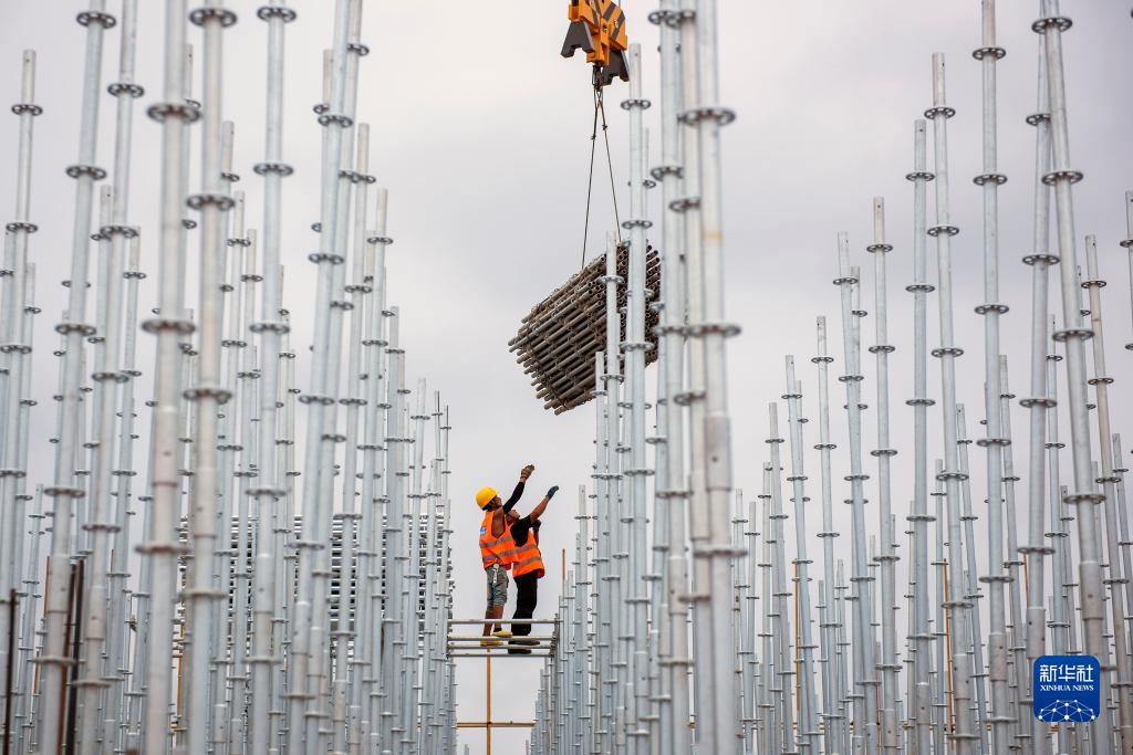 9月30日,在湖南婁底經(jīng)開(kāi)區的半導體顯示新材料產(chǎn)業(yè)園項目現場(chǎng),中建一局的建設者在施工作業(yè)。