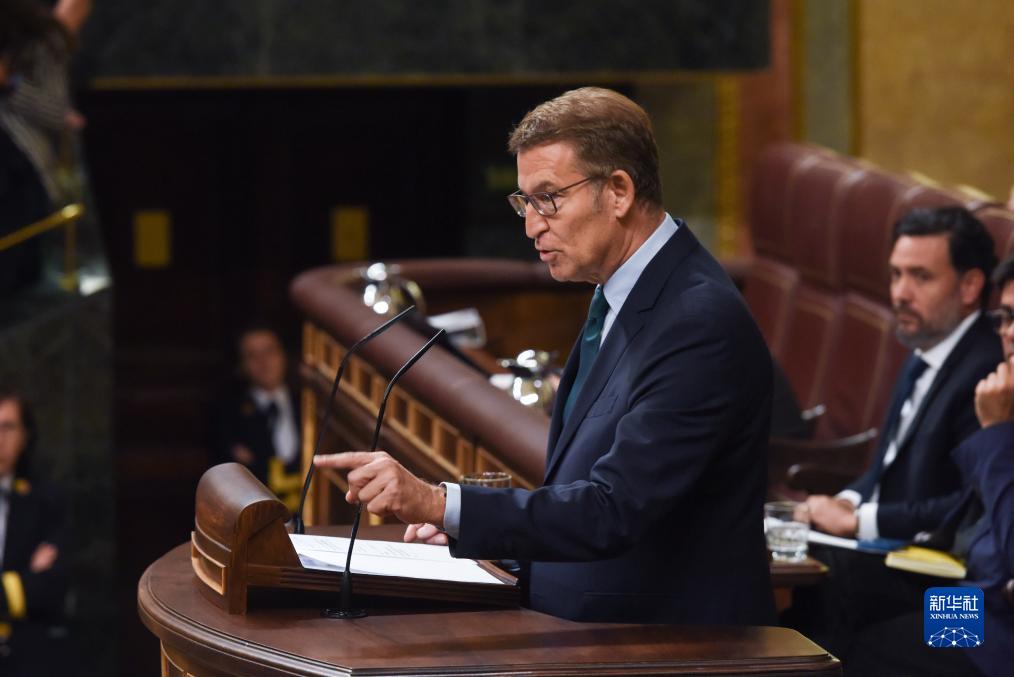 9月29日,在西班牙首都馬德里,人民黨領(lǐng)導人費霍在西班牙議會(huì )就其出任首相一事進(jìn)行的第二輪投票會(huì )議上發(fā)言。