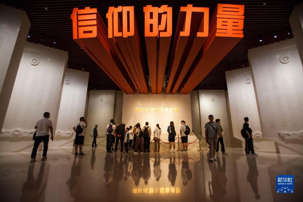 9月30日,游人在南京雨花臺烈士陵園的烈士紀念館里參觀(guān)。