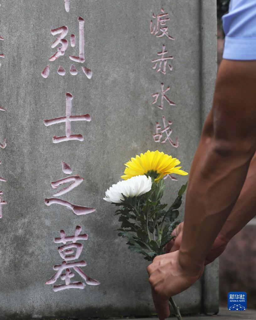9月30日,在貴州省赤水市紅軍烈士陵園,人們向紅軍烈士敬獻鮮花。