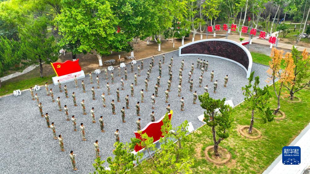 陸軍第71集團軍“攻堅勁旅”組織官兵在該旅緬懷先烈廣場(chǎng)舉行紀念儀式,向犧牲的烈士和戰斗英雄們默哀(無(wú)人機照片,9月28日攝)。