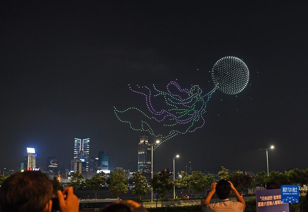 9月30日,無(wú)人機在維港上空拼成“嫦娥奔月”造型。