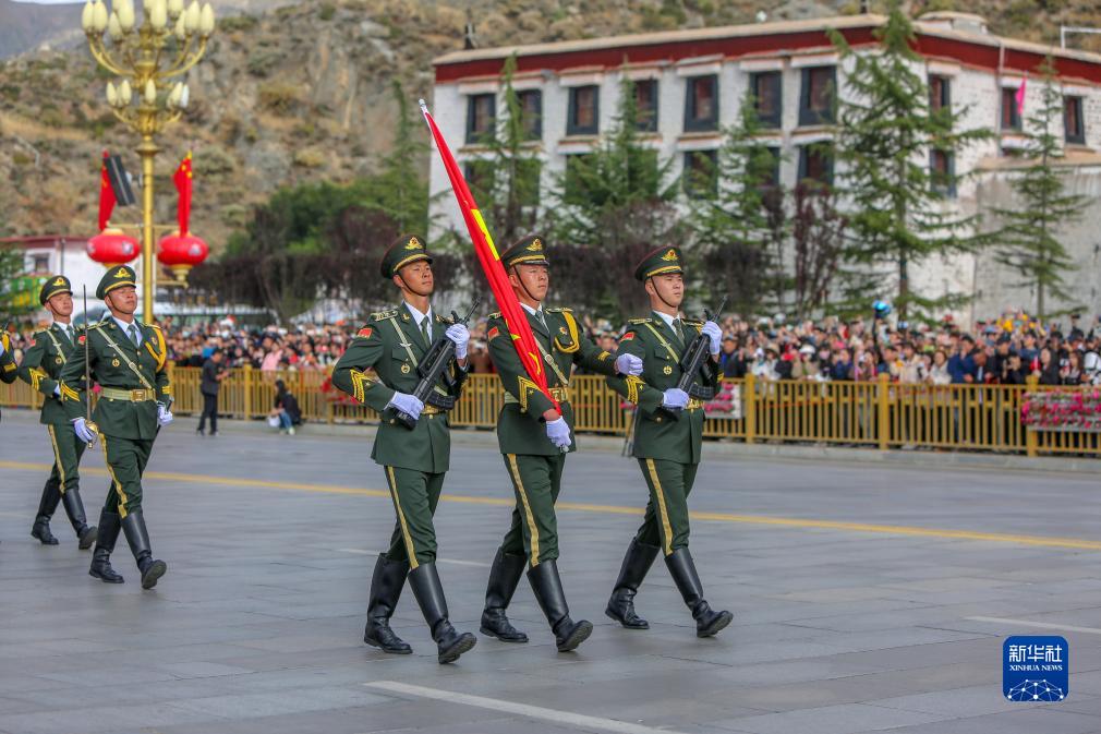 10月1日上午,西藏自治區慶祝中華人民共和國成立74周年“升國旗、唱國歌”儀式在拉薩布達拉宮廣場(chǎng)舉行。