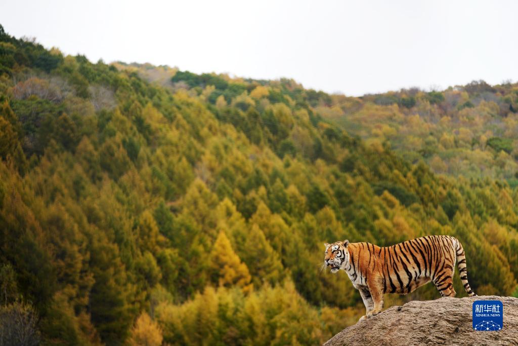 10月1日在橫道河子東北虎林園東北虎散放區拍攝的東北虎。