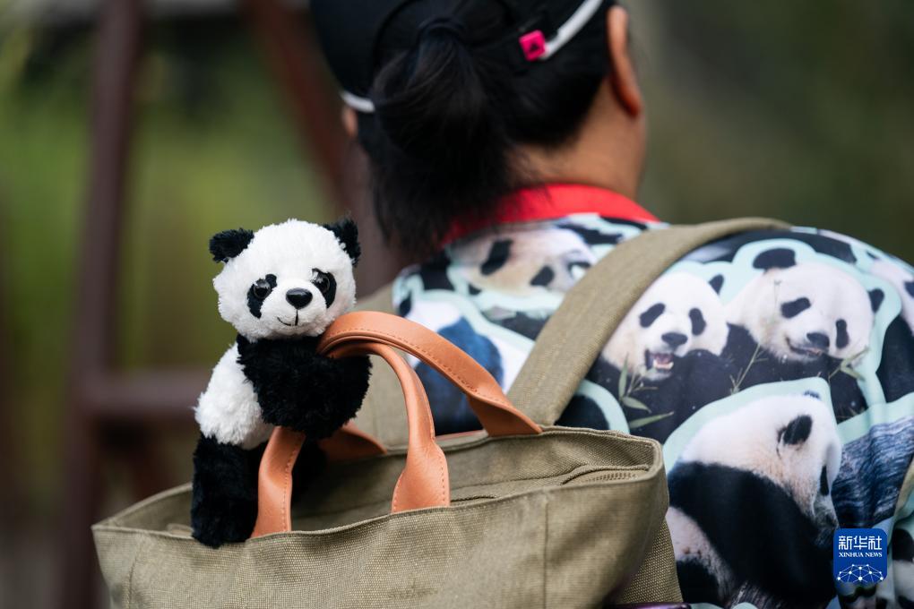 這是9月30日在美國華盛頓史密森學(xué)會(huì )國家動(dòng)物園拍攝的游客背包上的大熊貓玩偶。
