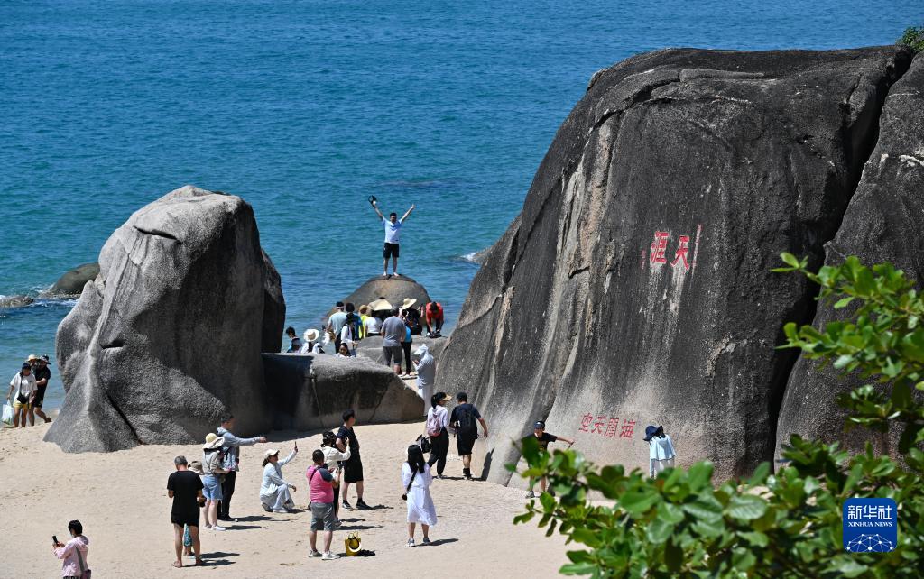 10月1日,游客在三亞市天涯海角游覽區游玩。