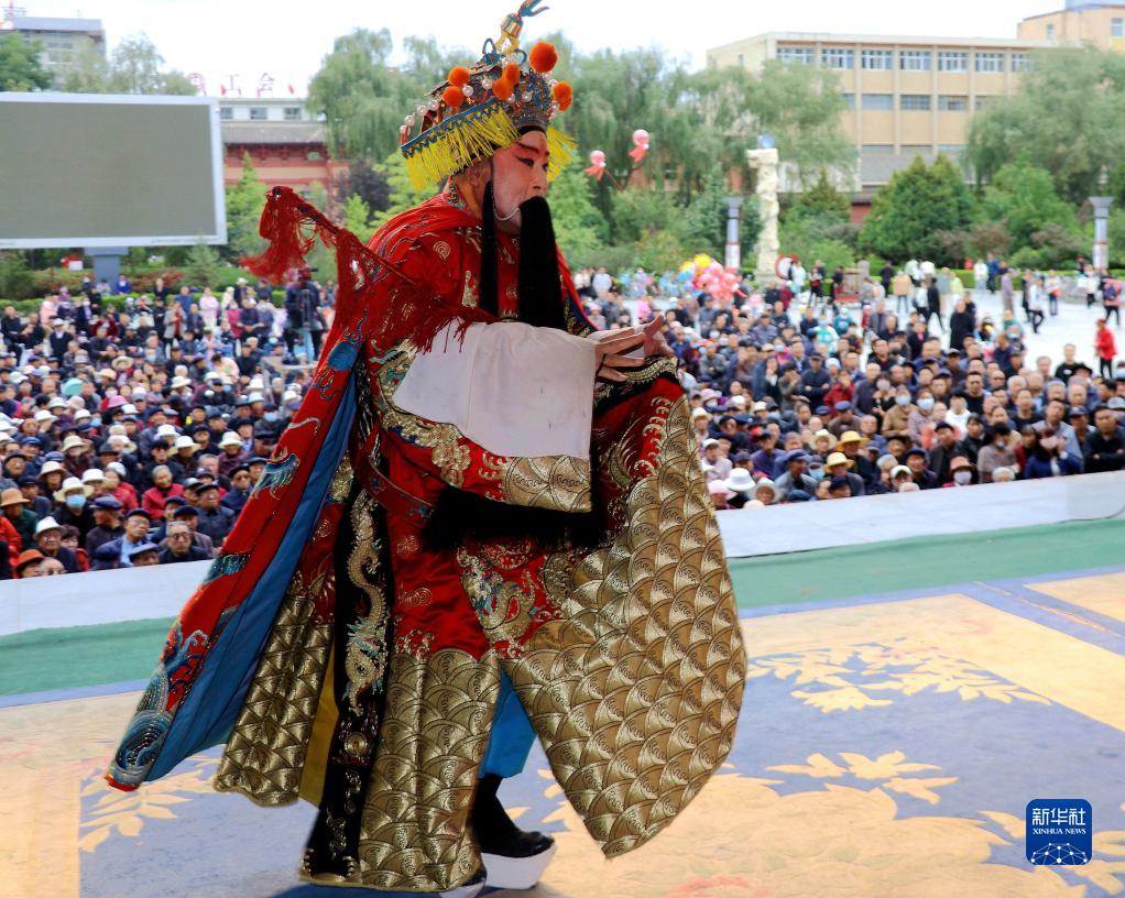 10月1日,在甘肅省平?jīng)鍪徐o寧縣成紀文化城,人們觀(guān)看秦腔表演。