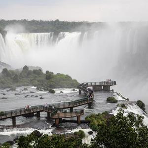 伊瓜蘇大瀑布位于巴西和阿根廷交界處,是世界著(zhù)名旅游景點(diǎn),由275道大小各異的瀑布組成,總跨度約為2700米,是世界上最寬的瀑布群。