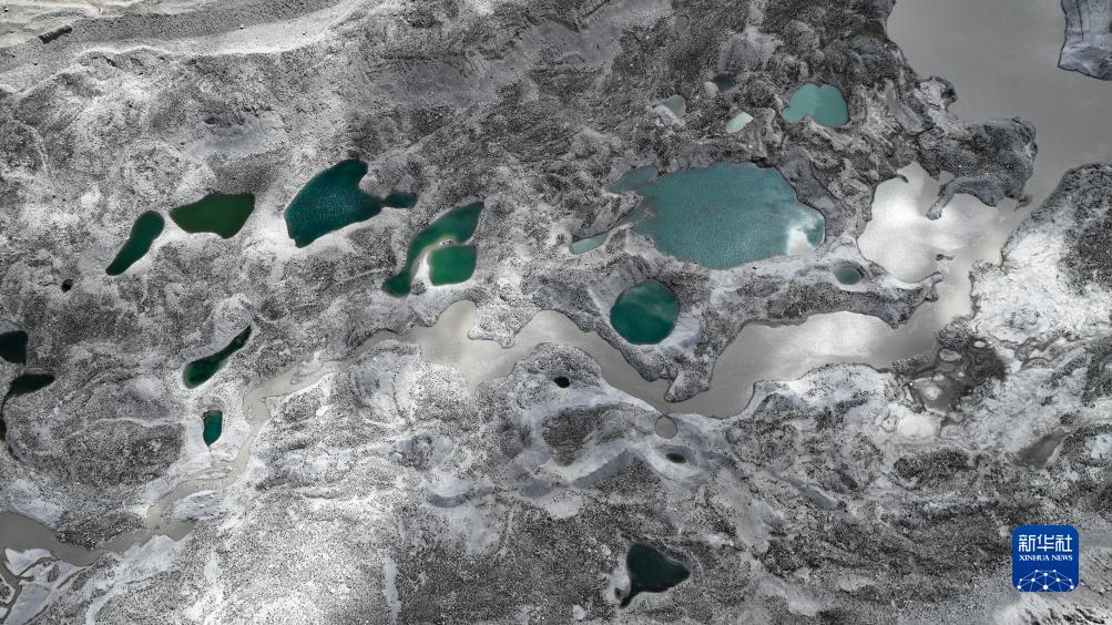 卓奧友峰區域加布拉冰川附近的冰前湖(9月29日攝,無(wú)人機照片)。