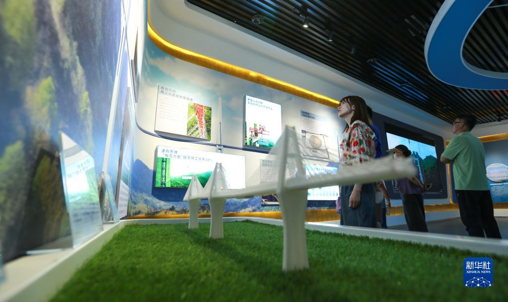 10月2日,游客在貴州省平塘縣“天空之橋”觀(guān)光服務(wù)區橋梁科普館參觀(guān),了解平塘特大橋建設過(guò)程。
