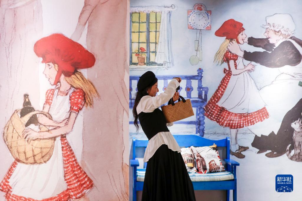 10月2日,一名女孩在安徽省黃山市屯溪區黎陽(yáng)老街舉行的《世界插畫(huà)大展》上拍照。