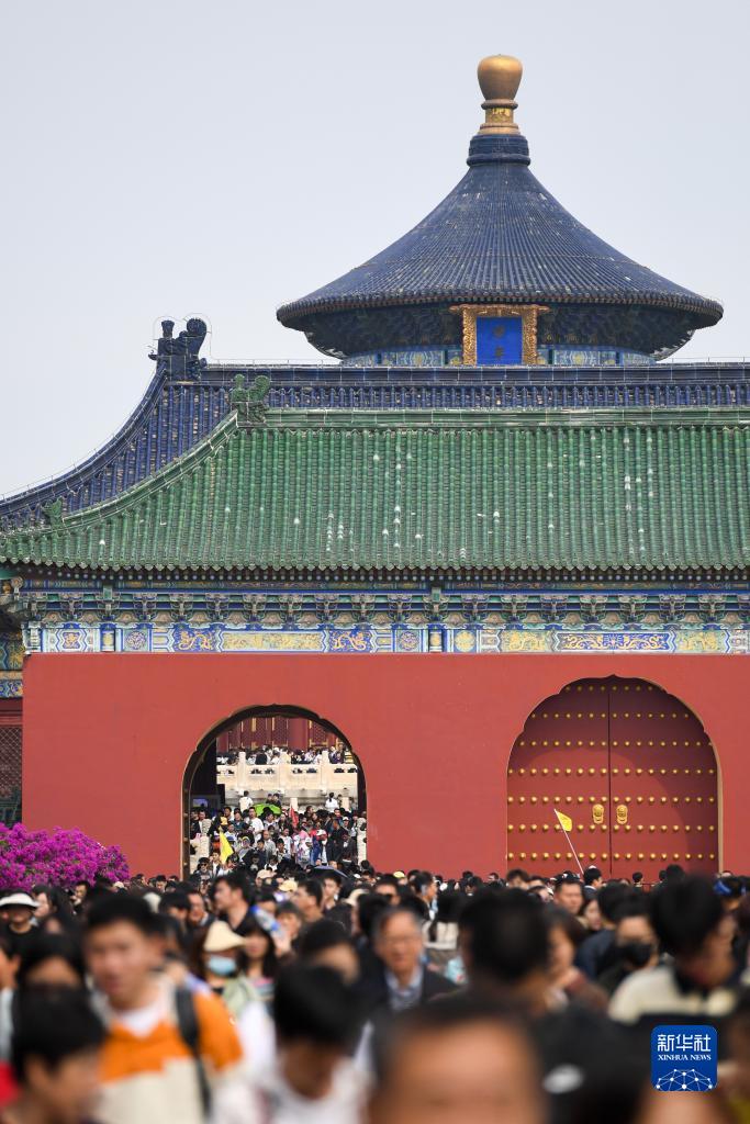 當日正值國慶假期,在北京天壇公園,來(lái)自各地的游客在這里參觀(guān)游覽。