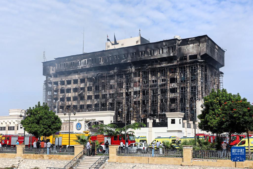 這是10月2日在埃及伊斯梅利亞拍攝的發(fā)生火災的警察局大樓。