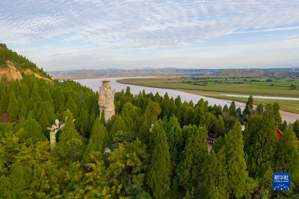 這是在大禹渡拍攝的大禹像(9月21日攝,無(wú)人機照片)。