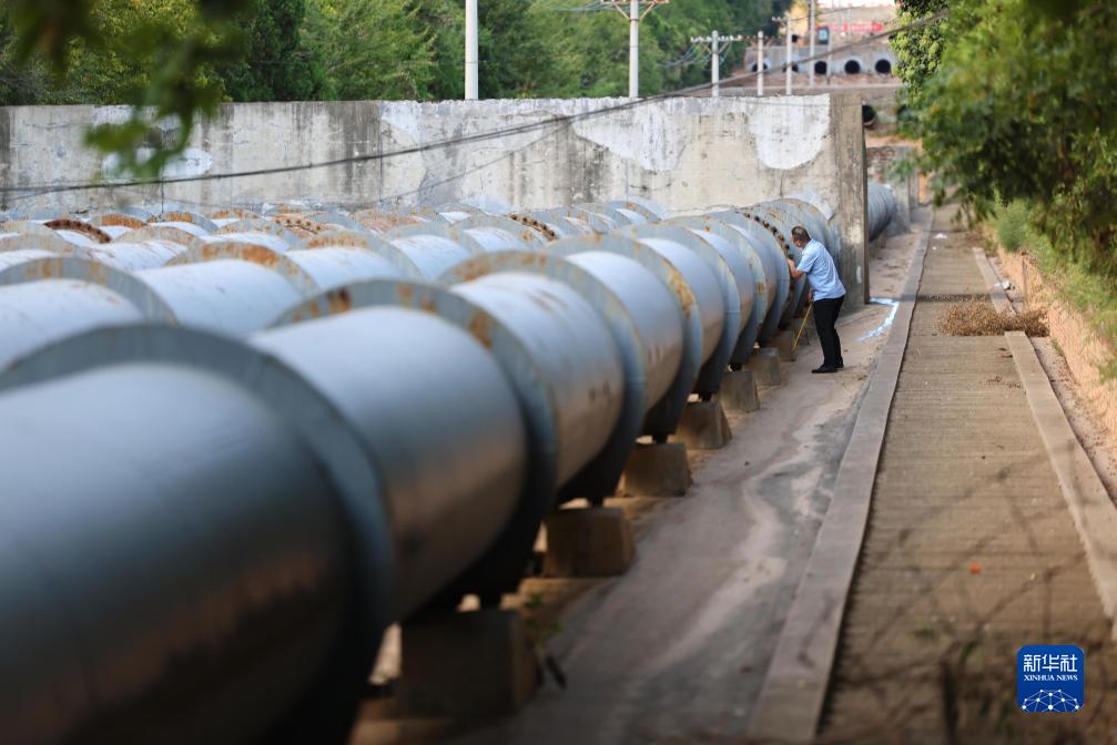 工作人員在大禹渡揚水工程對管道進(jìn)行養護(9月21日攝)。