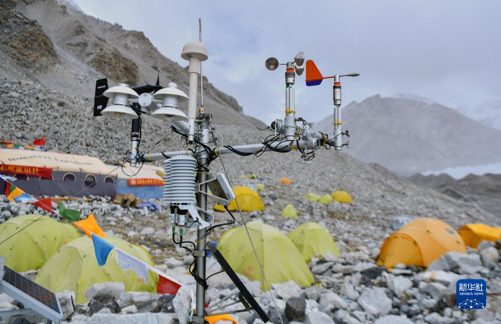 位于海拔5700米卓奧友峰前進(jìn)營(yíng)地的自動(dòng)氣象站(9月29日攝)。