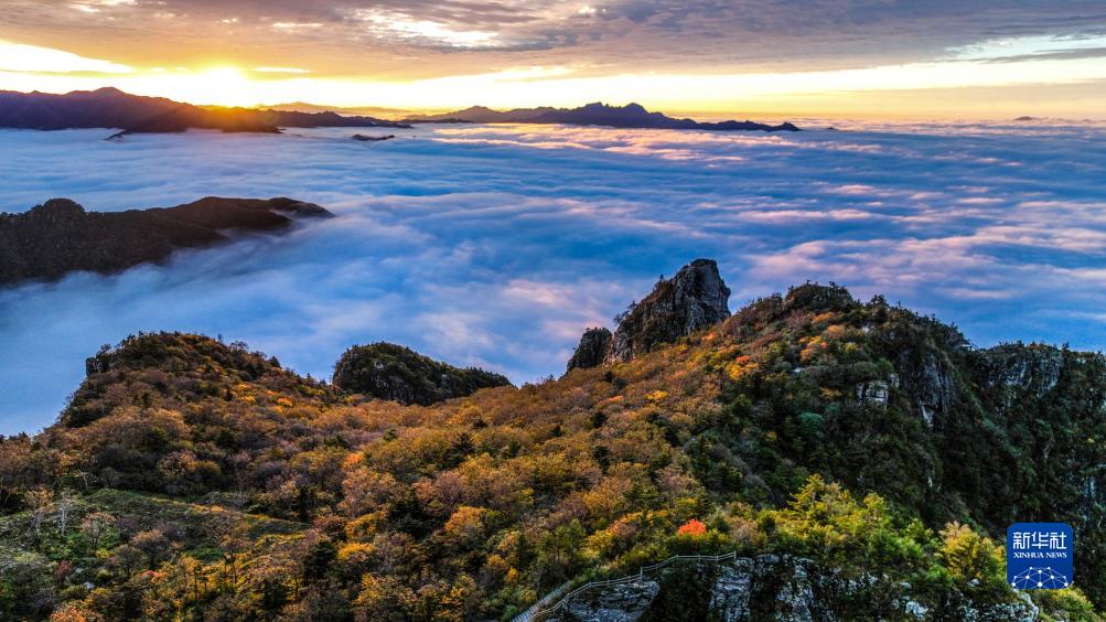 10月3日拍攝的陜西秦嶺牛背梁國家森林公園(無(wú)人機照片)。