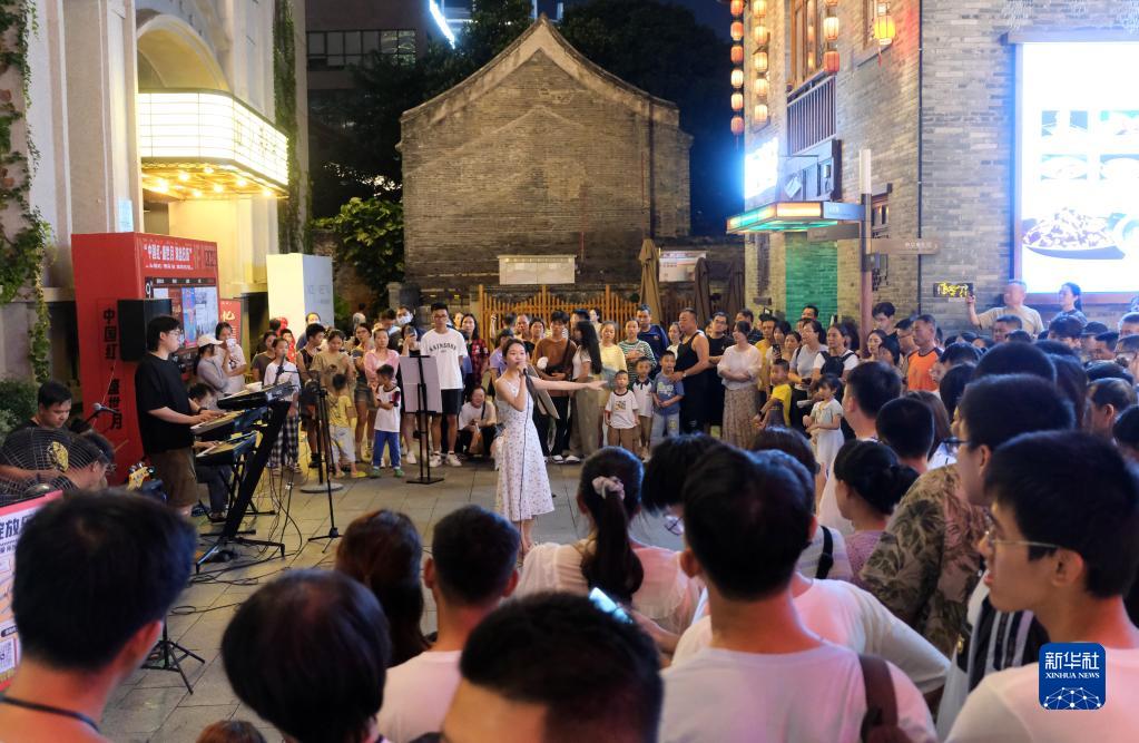 10月4日,消費者在廣西南寧市三街兩巷觀(guān)看演出。