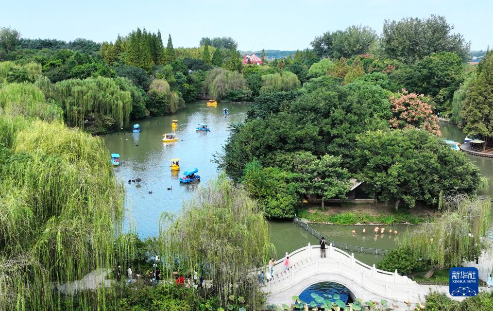 10月4日,游客在江蘇省揚州市茱萸灣風(fēng)景區游玩(無(wú)人機照片)。