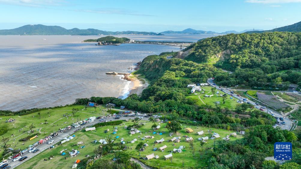 10月4日,浙江省舟山市普陀區螺塘線(xiàn)沿線(xiàn)風(fēng)景旖旎,吸引不少市民游客前來(lái)露營(yíng)、休閑(無(wú)人機照片)。