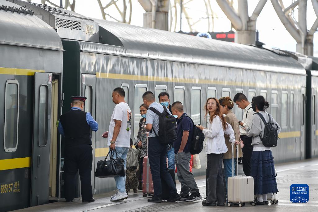 10月5日,旅客在南京火車(chē)站乘車(chē)出行。