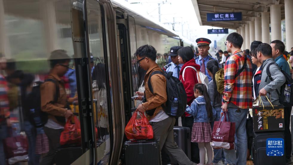 10月5日,旅客在滬昆高鐵貴州銅仁南站乘車(chē)。