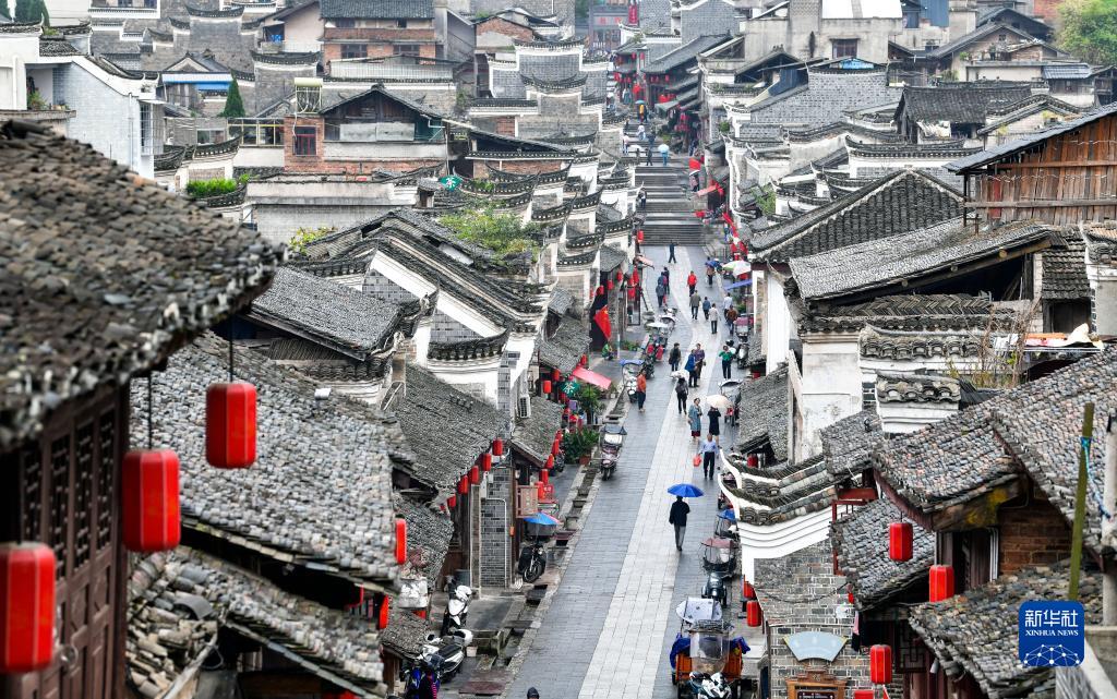 10月5日,游客在貴州省黎平縣古城翹街參觀(guān)。