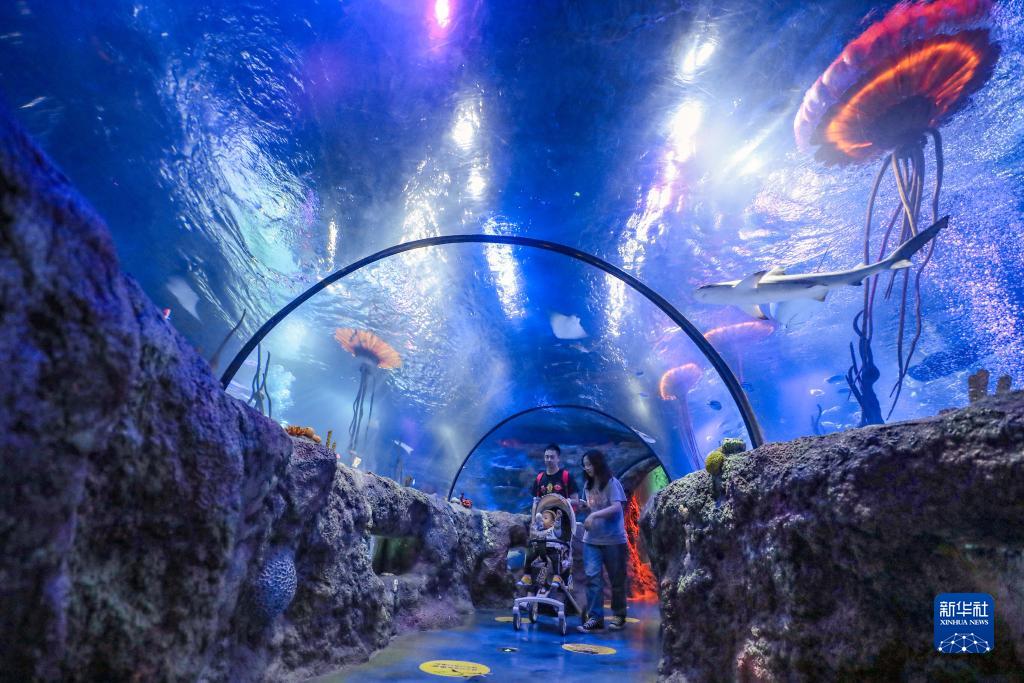 10月5日,游客在遼寧省沈陽(yáng)海洋探索中心游覽。