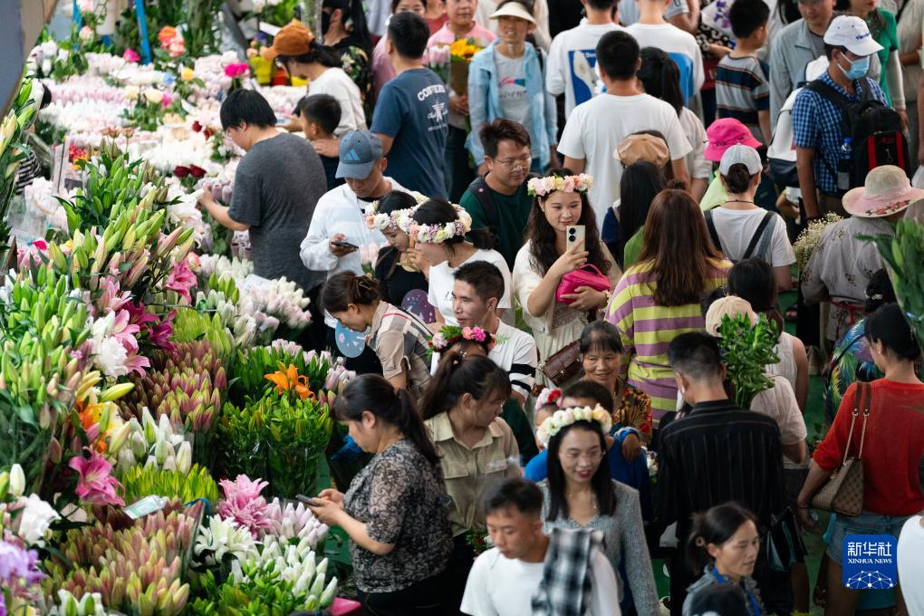 中秋國慶長(cháng)假期間,不少市民游客前往云南省昆明市的斗南花卉市場(chǎng)選購鮮花。