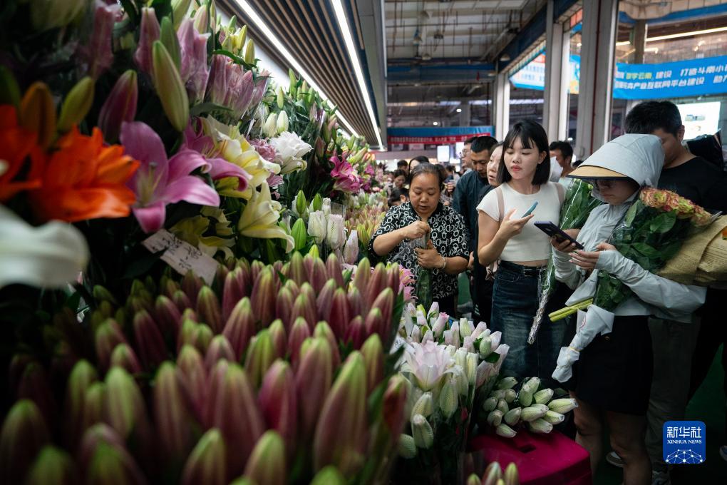 中秋國慶長(cháng)假期間,不少市民游客前往云南省昆明市的斗南花卉市場(chǎng)選購鮮花。