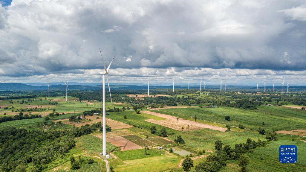 這是10月5日在泰國猜也蓬府拍攝的由中國金風(fēng)科技提供的風(fēng)力發(fā)電機(無(wú)人機照片)。