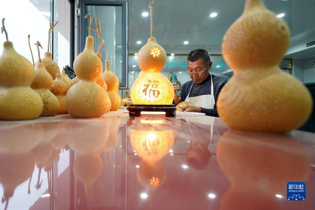金秋時(shí)節,河北省邢臺市信都區會(huì )寧鎮張爾莊村的千畝葫蘆園進(jìn)入收獲季。形態(tài)各異的葫蘆經(jīng)過(guò)磨皮、晾曬和加工等程序進(jìn)入葫蘆雕刻工藝室,變身精美的藝術(shù)品。近年來(lái),張爾莊村打造以葫蘆種植、休閑觀(guān)賞、藝術(shù)雕刻為主的農業(yè)文化旅游融合項目,有效帶動(dòng)村民在家門(mén)口實(shí)現增收。