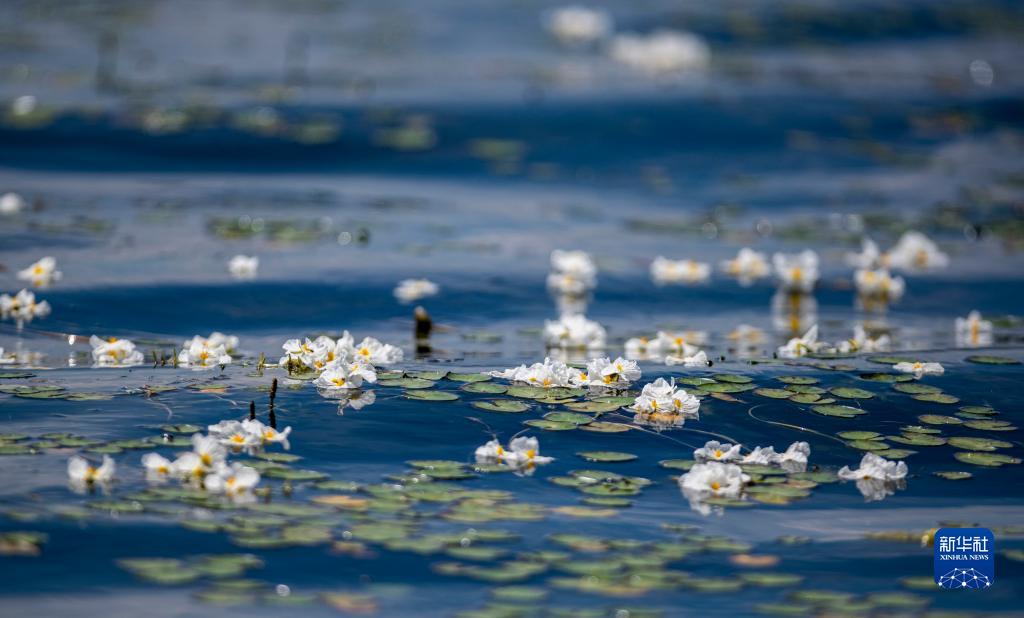 在云南大理洱海中開(kāi)放的海菜花(2020年5月31日攝)。在云南大理洱海,被視為“水質(zhì)風(fēng)向標”的海菜花一度難覓蹤跡。2016年底,云南省開(kāi)啟搶救式保護工作,全面打響洱海治理攻堅戰。如今海菜花又在清澈的湖水中隨波蕩漾。